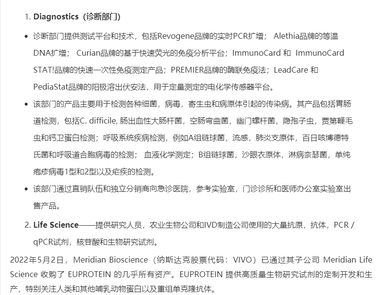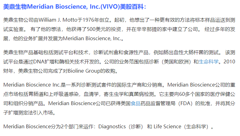 7月7日,Meridian Bioscience宣布已达成协议,将被韩国诊断公司 SD Biosensor 和投资公司 SJL Partners 新成立的附属公司以约 15.3 亿美元(现在约100亿RMB)的价格收购。