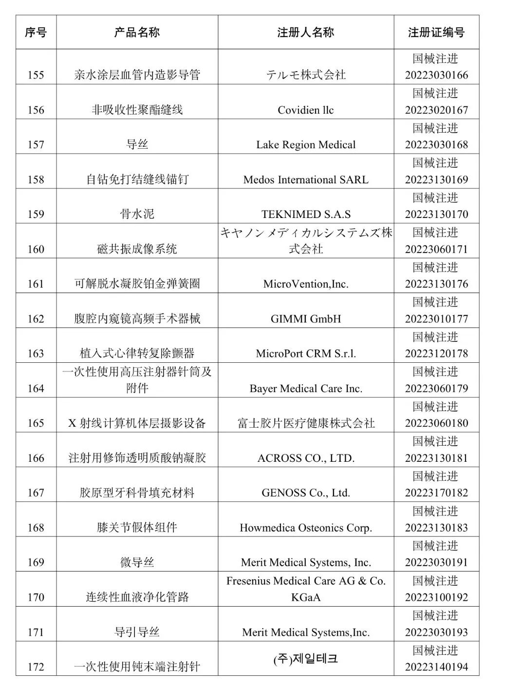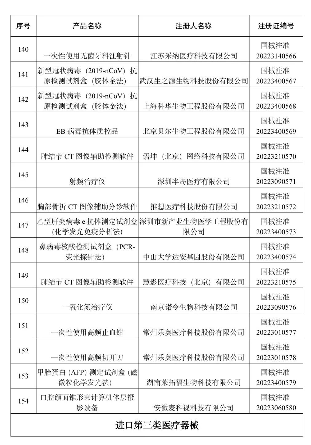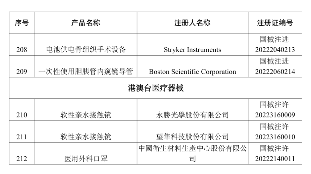 6月16日,国家药监局发布公告,2022年5月,国家药品监督管理局共批准注册医疗器械产品164个。其中,境内第三类医疗器械产品109个,进口第三类医疗器械产品23个,进口第二类医疗器械产品30个,港澳台医疗器械产品2个。