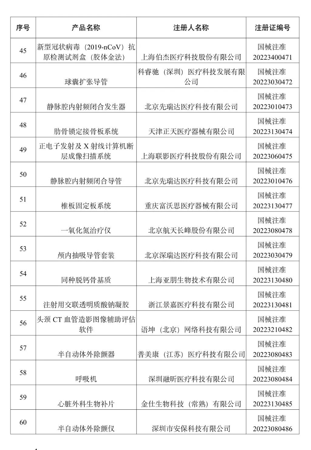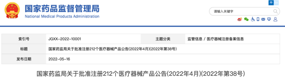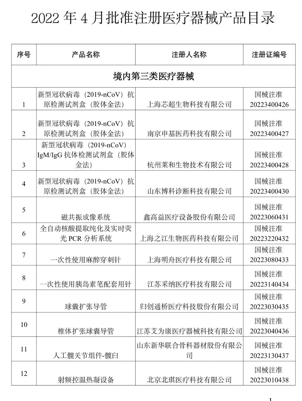 近日,国家药监局发布公告,2022年4月,国家药品监督管理局共批准注册医疗器械产品212个。其中,境内第三类医疗器械产品154个,进口第三类医疗器械产品35个,进口第二类医疗器械产品20个,港澳台医疗器械产品3个。