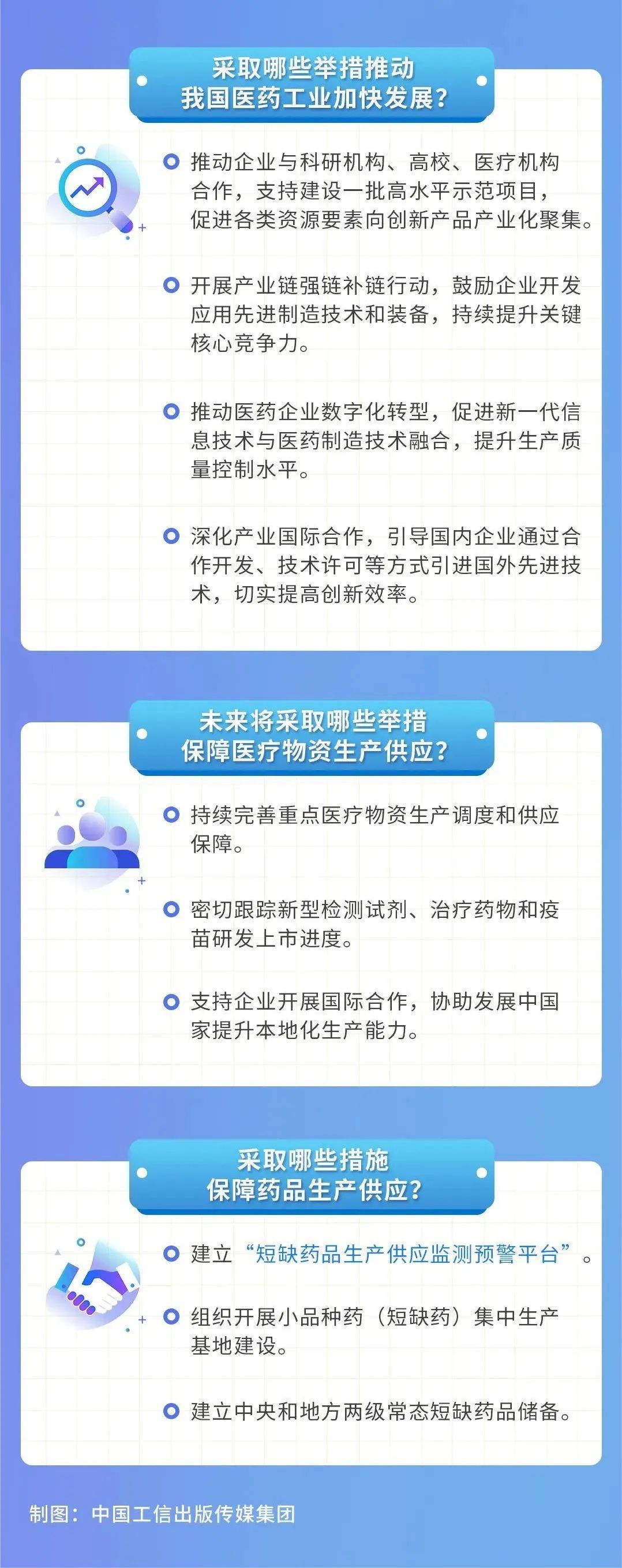 每日经济新闻记者:近年来,个别药品短缺受到社会关注,请问工业和信息化部主要采取了哪些措施来保障药品生产供应?下一步有何考虑?